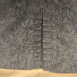 Elegant and timeless, this vintage Central Falls black jacquard pencil skirt is a sophisticated wardrobe staple. The skirt features a subtle floral damask pattern woven into a structured, slightly stretchy fabric for a flattering fit.