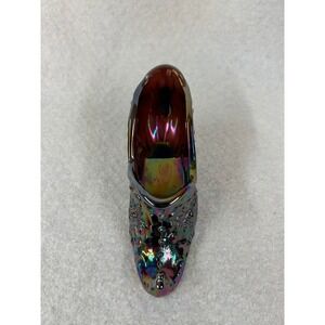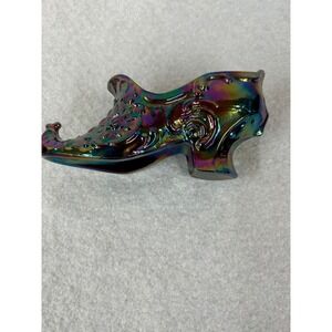 Keywords: carnival glass, glass slipper, shoe figurine, iridescent glass, collectible glass, novelty decor, vintage glass, glass art, home decor, display piece, curio cabinet, glass shoe, decorative glass