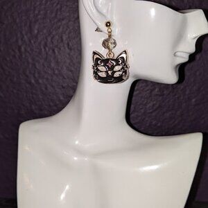 Enamel cosmic being cat earrings with silver toned Czech glass accents. These adorable earrings are out of this world! Make them yours today! These earrings are made with 304 stainless steel studs. Handmade NEW sealed in bag with tags. Comes with both metal and rubber backings.