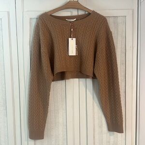LoveShackFancy Calloway Cropped Sweater in Beige M NWT