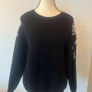 Blugirl Knit Sweater w/ Floral Sleeves & Subtle Sparkle – M