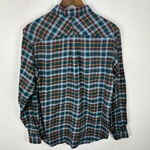 Columbia Omni Wick Plaid Flannel Shirt Mens M Blue Green Button Front Outdoors