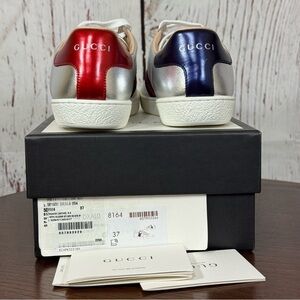 GUCCI ACE Year of the Dog Metallic Silver Women’s Napa Leather Sneakers 7 NiB