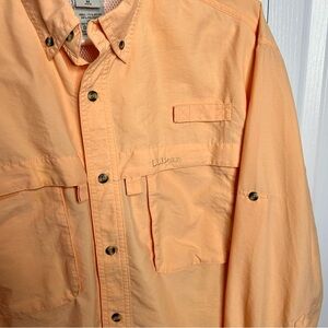 L.L. Bean Men Fishing Shirt M Regular Collared Outdoor Button Up Vented Orange