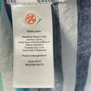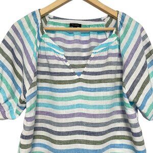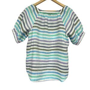 Talbots Linen Top Womens Size M Blue Stripe Puff Sleeve Beachy Coastal Preppy