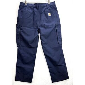 Carhartt Cargo Pants Mens 34x30 Navy Blue Loose Fit Work Carpenter 106696