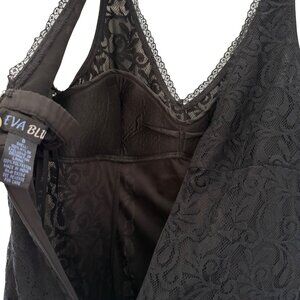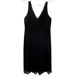 Black Y2K Sleeveless Formal Dress Sequin Lace Bodice Babydoll V Neck & Back 8