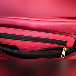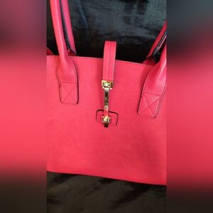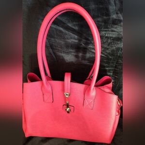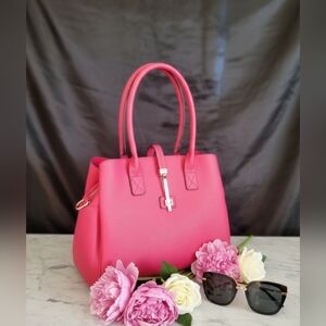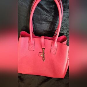 Eye-catching hot pink purse by Mellow World, crafted with beautiful gold-tone hardware and a structured, organized design. In excellent condition and well cared for.