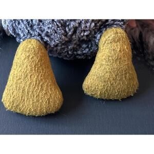 The toy is made from a variety of soft textures and materials, including velour and boa fur accents. It has been well-maintained and is in very good condition with no major flaws. It is perfect for cuddling, nursery decoration, or as a unique gift for an owl enthusiast.