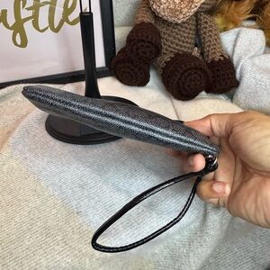 Stylish Coach wristlet with textured design. Features secure zip closure and wrist strap.