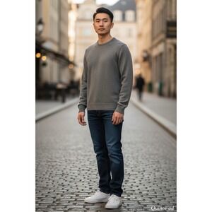 Mens Quince 100% Cashmere Crewneck Sweater Gray Size L