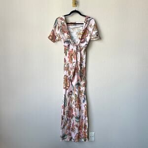 NEW with tags Anthropologie Kachel pink and multicolor floral paisley flutter sleeve slip dress. Delicate silky viscose fabrication cut on the bias. Short flutter sleeves. Slip silhouette. Tie styling in back. Size 2 - 16.5" pit to pit with an open back; 15" waist (cut on bias); 47" length from pit.