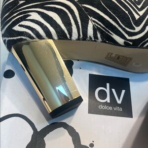 Size 8.5. Dolce Vita Zebra Calf fur. Double Side Zip, Gold Heels. Never worn.