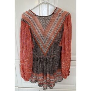Free People Aliyah Orange Brown High Low Printed Boho Tunic Top Size XS