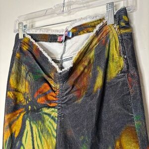 Urban Outfitters Butterfly Print Velvet Flare Pants V Front Ruched Waist Y2K Size 29