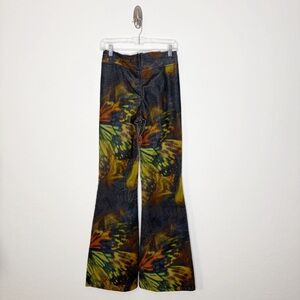 Urban Outfitters Butterfly Print Velvet Flare Pants V Front Ruched Waist Y2K 29