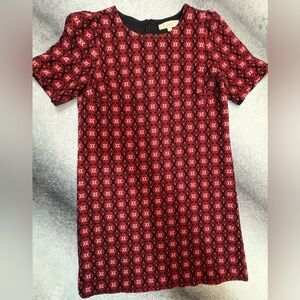 LOFT Ann Taylor Red Black Floral Medallion Textured Jacquard Shift Dress M (A7)