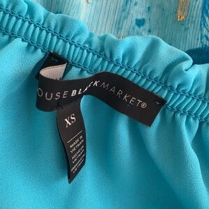 White House Black Market teal on/off the shoulder clip dot lined blouse size XS