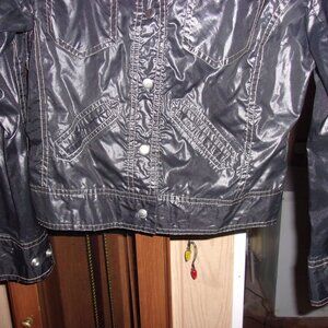 Up for sale is a Very Cute 1970's Black Nylon Cire Cropped Jacket. It has the following features: