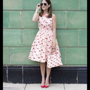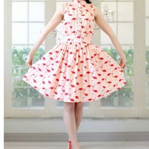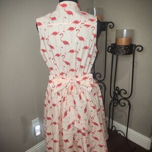 Looking for a print that's as bold as it is chic? Our playful flamingo print is bringing the 50's and 70's back with something way cooler than lawn ornaments: With pretty finishings like a button-down front and self-tie waist, this dress is simple yet conversation-starting.