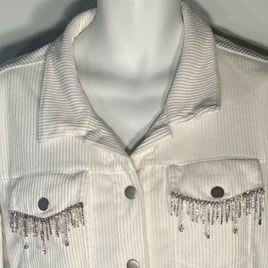 Savanna Jane White Corduroy Jacket with Silver Embellishments. Size Medium