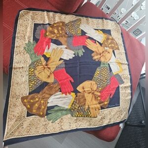 🧤Christian Dior🧣Les Gants “Glove Print” Vintage 100% Silk Scarf 35″ x 35″