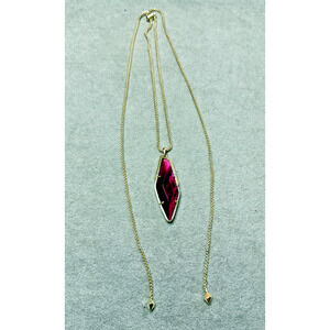 Kendra Scott 34" Damon Necklace Dark Magenta Illusion Adjustable Bolo Gold Tone. Gold plated over brass. Magenta/Maroon pendant. Adjustable sliding bead closure.