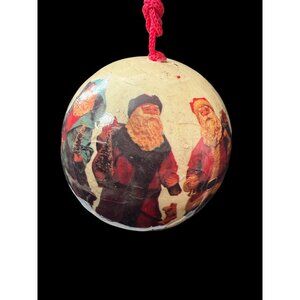 Set Of 4 Vintage Paper Mache Decoupage Santa Father Christmas Ornaments