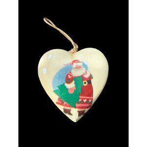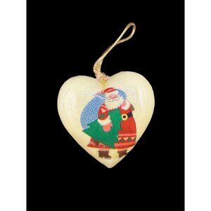 Festive ornaments add nostalgic charm to holiday decor. Features Santa designs with vibrant details, perfect for tree or home decoration.