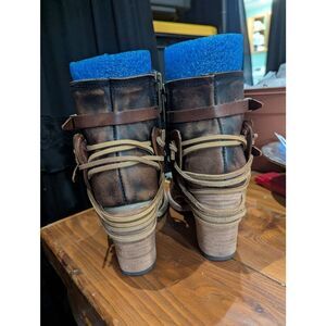 Freebirdāby Steven Carter Peep Toe Booties Women's 9 Cognac Distressed