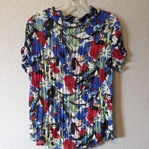 Style & Co Floral Short Sleeve Blouse Ruffled Button Down B Neck Sz.10