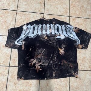 Black sleeveless top with vibrant graphic design. Features bold colors and unique artwork.