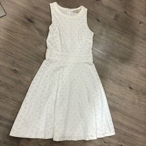 Ann Taylor LOFT White Eyelet A-Line Sleeveless Dress Sz 0 Bridal Floral Summer