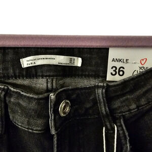 Brand new with tags Zara Trafaluc Ankle Skinny Jeans sz 4. Charcoal Black Distressed jeans, zipper and button closure, raw hem, 2 front and 2 back pockets and jeans do have stretch.