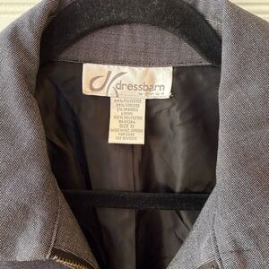 Dress Barn gray suit jacket. NWT. Zip up closure in front. Light shoulder padding. Length 26” Sleeves 24” pit to pit 21” across. Size 1X Excellent condition