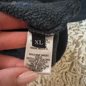 Cozy black hoodie with vibrant red and yellow stripes. Perfect for casual wear.
