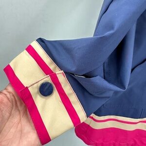 CHICOS Pleated blue-pink striped hem woman shabby chic hooded rain gorpcore outdoor activewear jacket