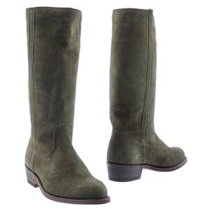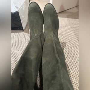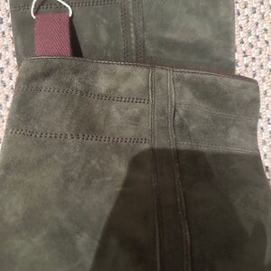 Step out in style with these elegant olive green suede knee-high boots. Perfect for any occasion, they offer both comfort and sophistication. Excellent condition. Worn twice too big for me
