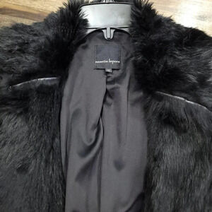 Nanette Lepore Luscious Rabbit Fur Knit Coat. Size XS. Gorgeous fur coat! 100% Real Rabbit Fur. Satin lined inside (50% polyester 47% cotton 3% spandex) even the sleeves for a soft comfy fit! Other materials: 70% Acrylic fibres 30% Wool. Ribbed knit sleeves and back. In great used condition with minor spots of wear. Some snagging/small holes only on one sleeve (see last picture). Has three loop closures all intact...last one slightly bent but still works! Features two front pockets.Please review all pictures for overall conditionTags: vintage boho christmas winter fall cute petite revovle free people nordstrom asos h&m forever 21 holiday seasonal urban outfitters warm cozy