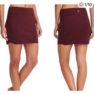 Athleta Tech Stretch Wanderer Burgundy Red Fleece Lined mini skirt Comfy