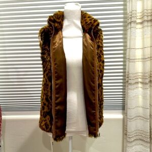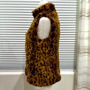 Fun, warm and trendy — fuzzy zip up vest with gorgeous Cheetah animal print.