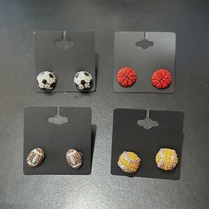 NWT 4 Pairs of Rhinestone Sports Ball Earrings