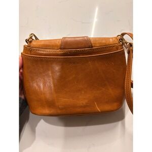 FOUNT Leather Crossbody Flap Buckle Bag Tan Cognac Small Shoulder Purse