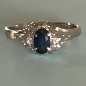 Platinum Sapphire & Diamond Cocktail Ring Size 5 Total Carat Weight 0.38