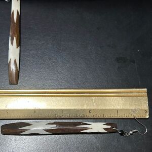 African Bone long dangling brown earrings with a cream star design at the top and bottom.
