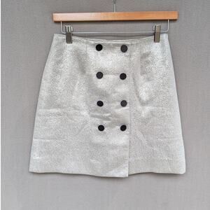 J.Crew Collection Button-front Mini Skirt in Metallic Silver Lamé, size 00