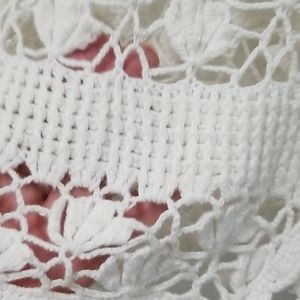EUC, white (not cream) cotton crochet cardigan sweater. Short sleeve, open knit, and covered front buttons. Perfect for layering over a tank or cami or anything else. See measurements below for a proper fit🦢