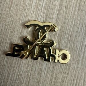 Dazzling upcycled CHANEL brooch with gold and silver tones. Embellished with sparkling crystals. Perfect for adding elegance. Upcycled items are created by repurposing authentic materials or components from existing items into a new, one-of-a-kind piece.