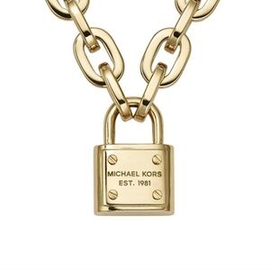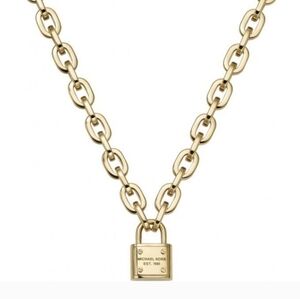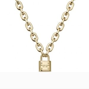 Michael Kors Chain Link Padlock Necklace 14k Gold Plated Stainless Steel NWT
