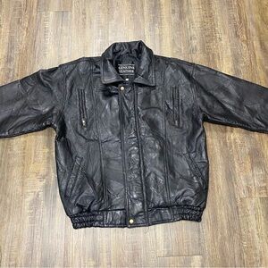Leather Black Jacket Men Size Medium Bomber Flight Casual Varsity Outerwear